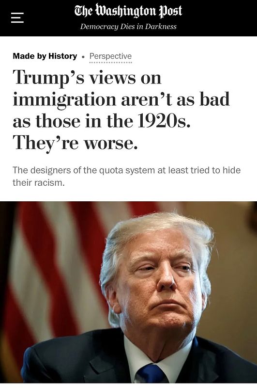 “Trump’s Views on Immigration aren’t as bad as the 1920s. They’re worse,” Op-ed, Washington Post, Made by History